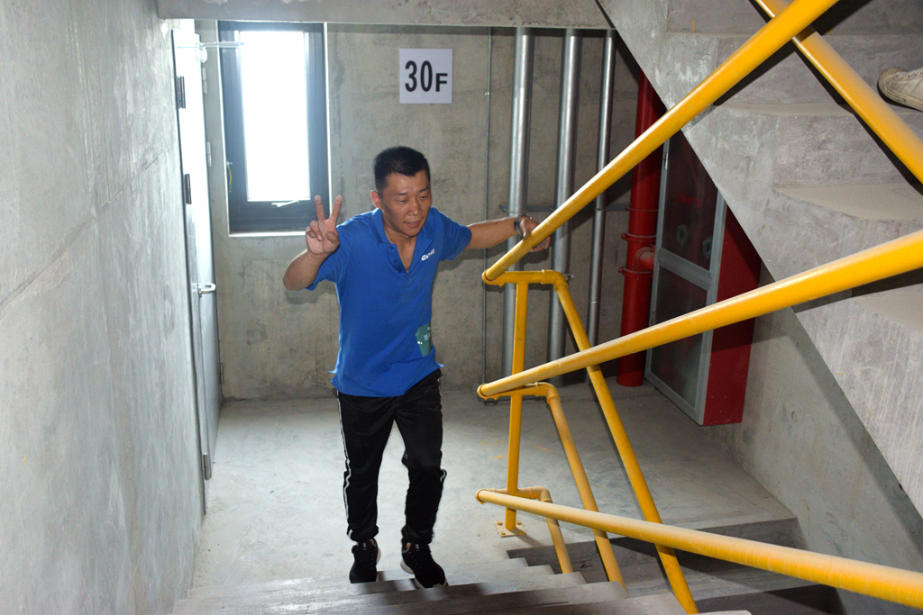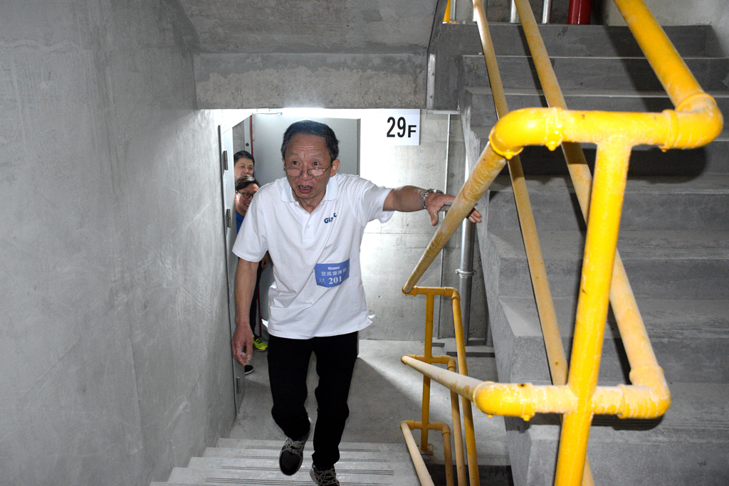 本次比賽根據(jù)參賽選手年齡、性別分為“誠信組”、“奮斗組”、“創(chuàng)新組”和“共享組”四個(gè)小組。一聲令下,比賽在高漲的氛圍中拉開序幕,從0到188米高空,從0到31層塔頂,選手們用腳步丈量巨人的高度,用汗水詮釋拼搏的熱度。