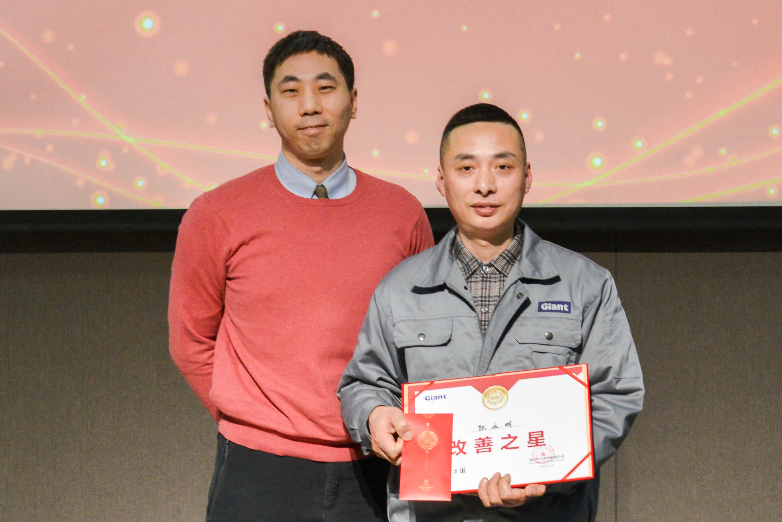 巨人集團(tuán)副總經(jīng)理錢蘇醒為“改善之星”頒獎(jiǎng)