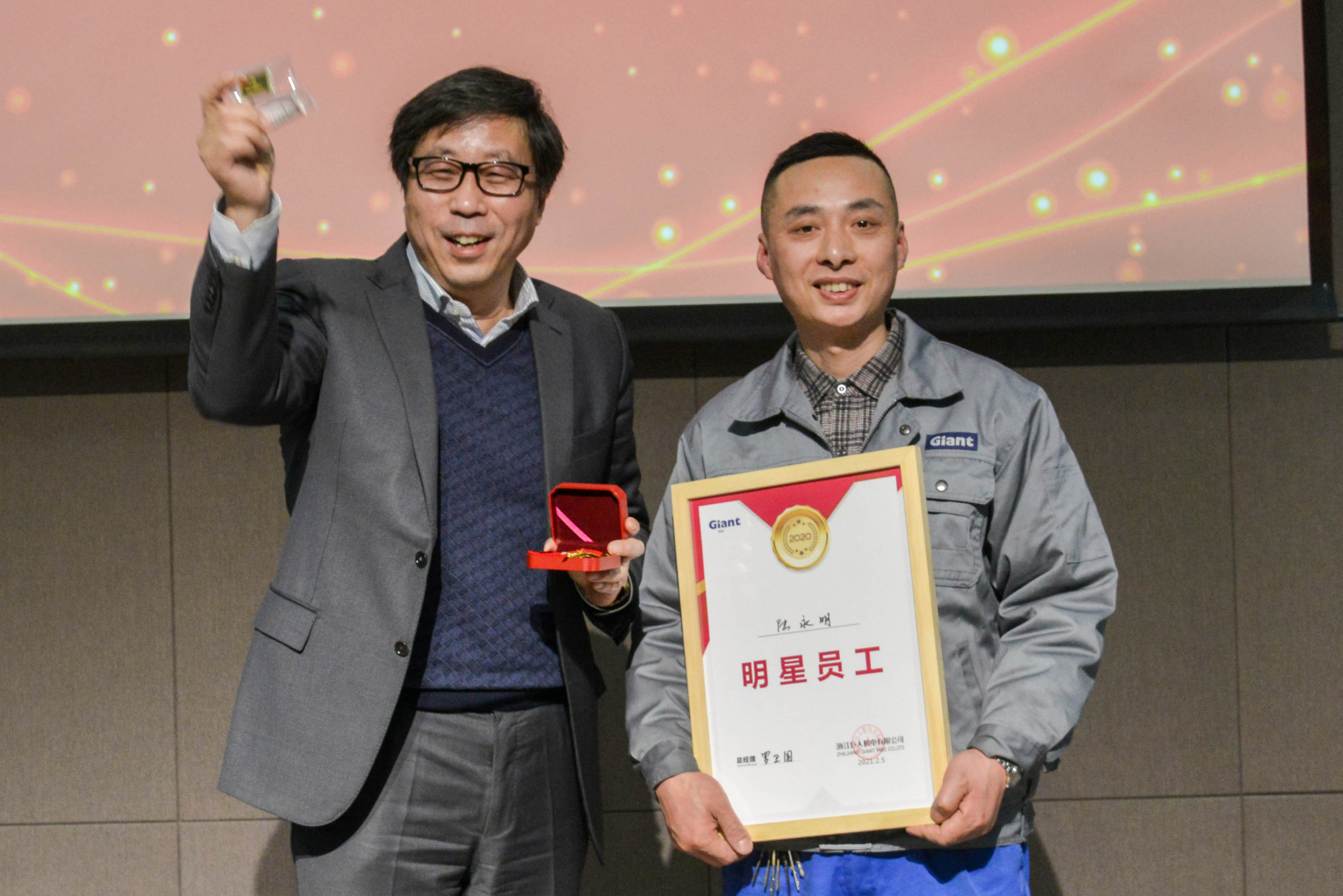 公司董事長(zhǎng)錢江為“明星員工”頒獎(jiǎng)
